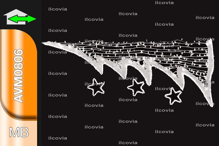 Le produit moitié d' un sapin de noël (incand) avec code AVM0806 a une grandeur de 1x2,5m (horizontal x vertical.)
