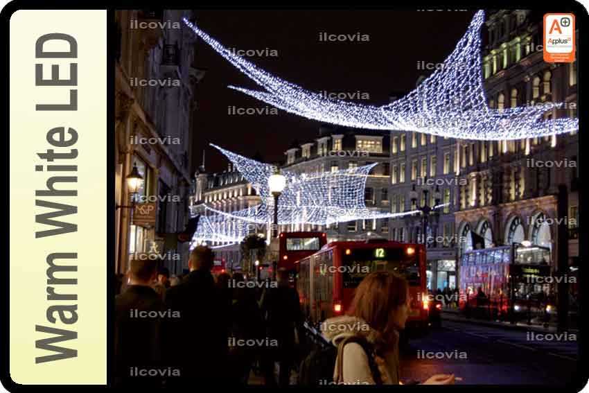 La lumière que fournit le produit réseaux de lumière led blanc chaud de 2x1.5m est en couleur Blanc chaud et jaillit des ampoules type LED