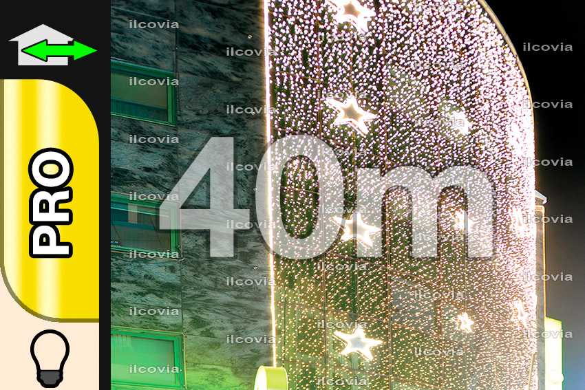 Le item kit rideau led blanc chaud doré 40x5m avec la référence IBC10050GWL4 a une taille de 5x40m (horizontale x verticale.)