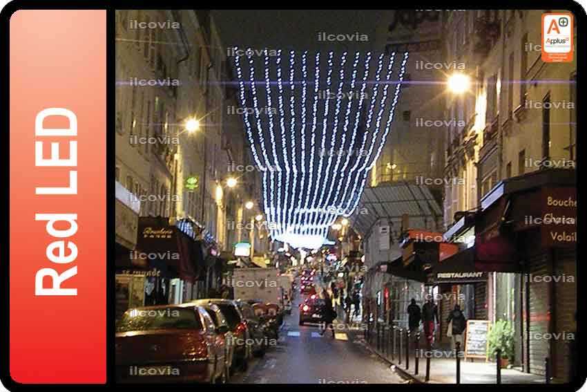 Fabriqué en couleur rouge qui est diffusée par les lampes type LED disposées en séries sur les ramifications des guirlandes de lumières connecter en parallèle à un embranchement principal