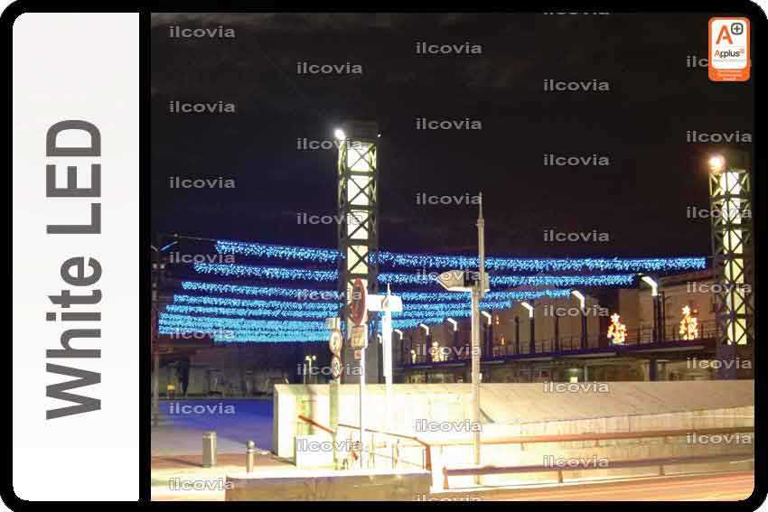 Confectionné en couleur blanc froid qui surgit des lampes type LED fixées en série tout le long de plusieurs ramifications unies en parallèle à un embranchement principal