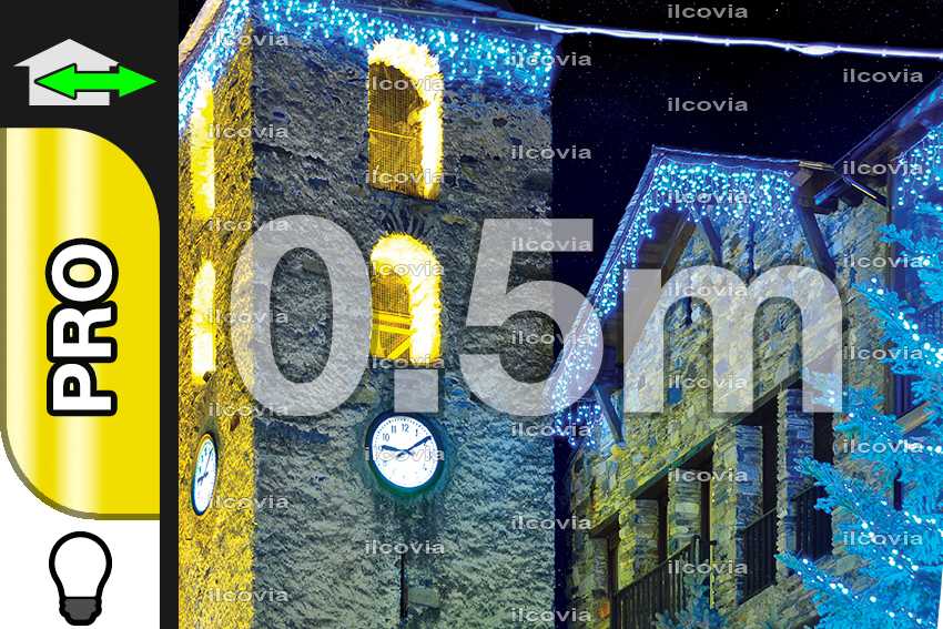 Le Sku kit rideau stalactite led blanc froid 0.5x15m avec code IBI05WL3 a une ampleur de 15x0,5m (horizontal x vertical.)