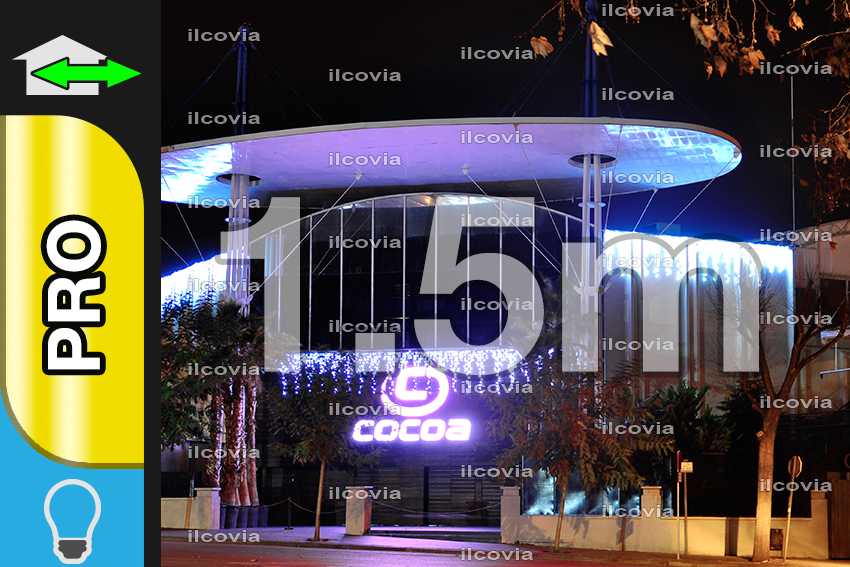 L'article rideaus stalactite led bleu de 20x1.5m avec code IBI1540BL5 une dimension de 20x1,5m (horizontal x vertical.)