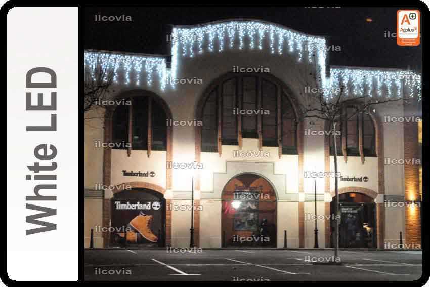 Il a été conçu en couleur blanc froid qui surgit des lampes du type LED mises en série tout le long des sections de guirlandes connectées en parallèle à un embranchement principal