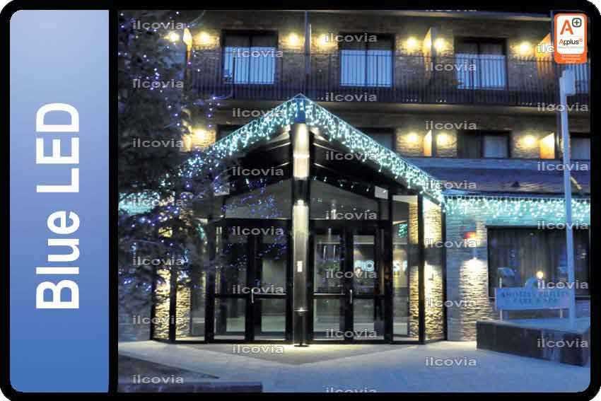 L'éclairage de l'élément kit rideau stalactite led bleu 1x12m est de couleur bleu qui sort des lampes type LED