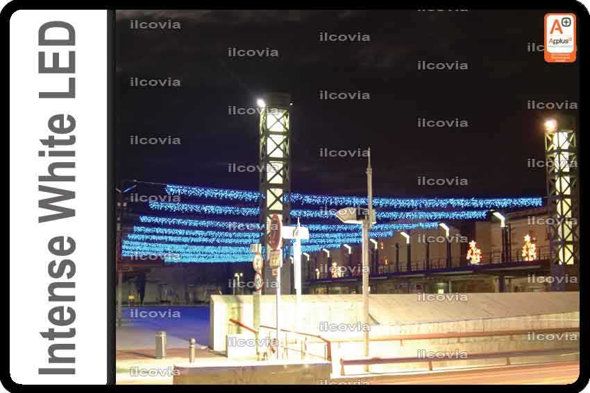 Il a été confectionné en couleur blanc haute intensité qui est émise par des ampoules LED distribuées en chaine tout le long de quelques sections de guirlandes reliées parallèlement à une section pincipale